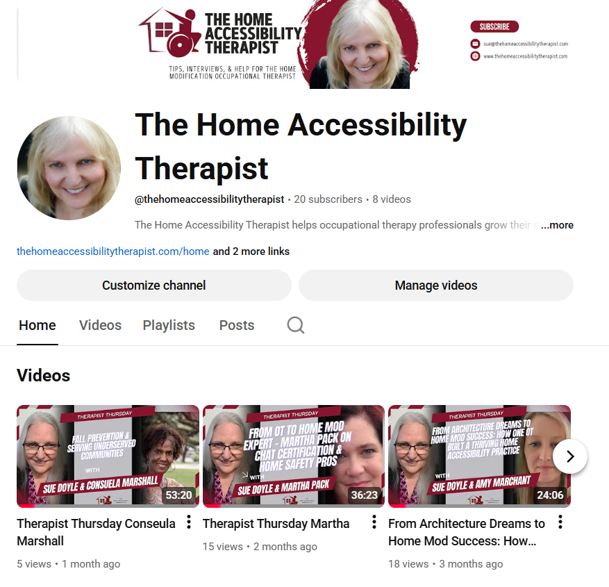 Visit our YouTube channel for practical, case-based videos on home accessibility, safety, and clinical reasoning in the home environment. You’ll see real-world examples, walk-throughs of common challenges, and clear explanations you can immediately apply in your assessments and recommendations. It’s an easy way to deepen your skills visually and stay current without adding more reading to your plate.